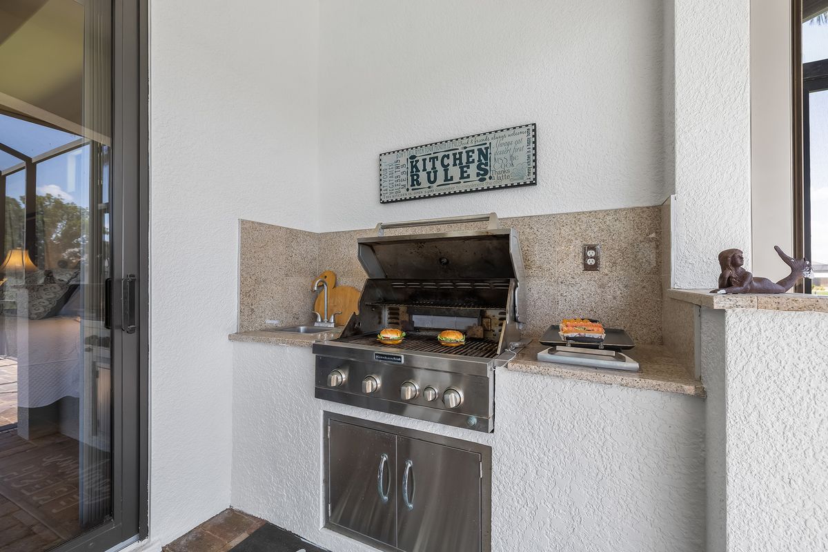 Step into your private Florida retreat, where the backyard is designed for connection and relaxation. Take a dip in the sparkling pool, soak in the hot tub under the stars, or stretch out in the comfortable lounge seating. Dine al fresco at the outdoor table, fire up the BBQ grill for casual cookouts, or catch the game on the outdoor TV—all set against the scenic backdrop of the waterfront.