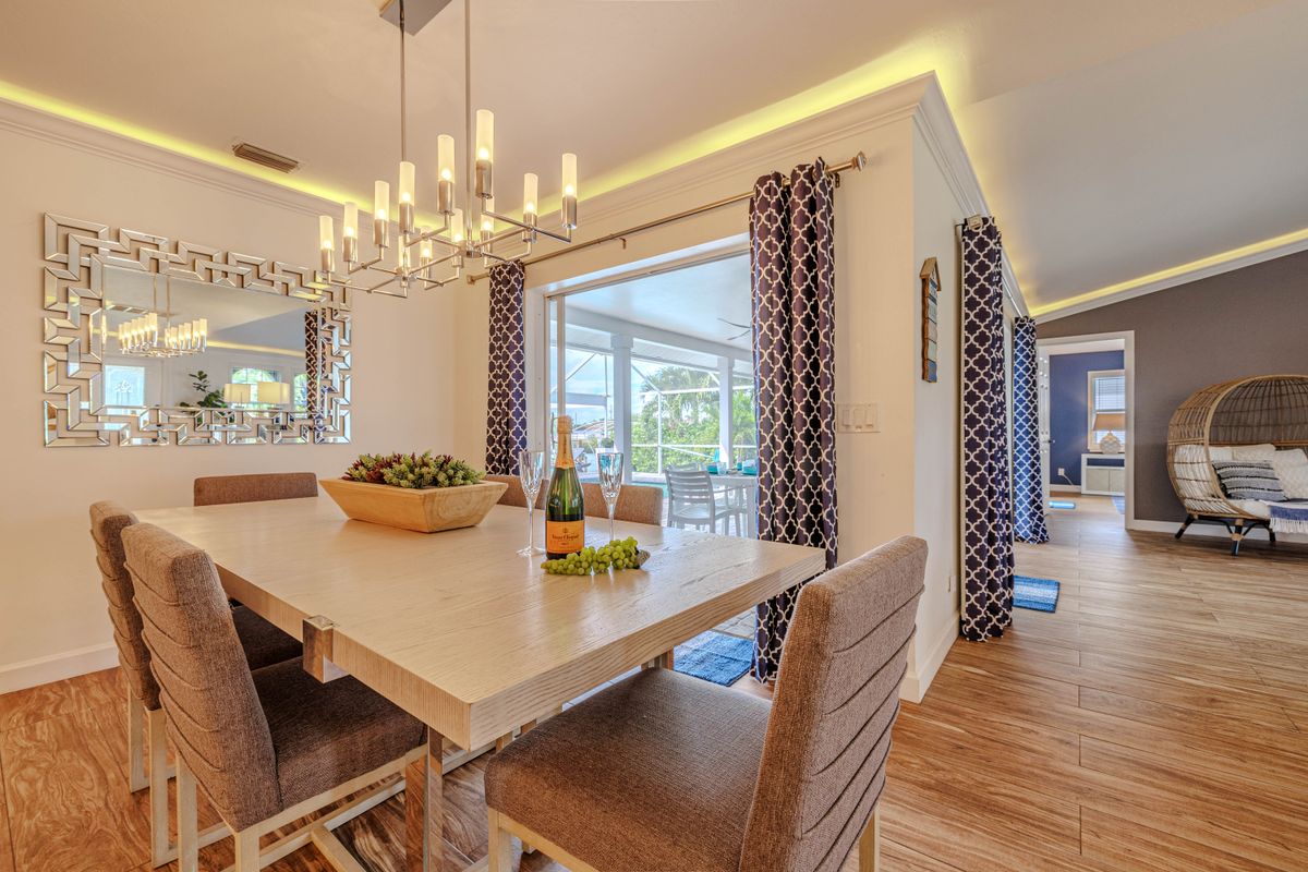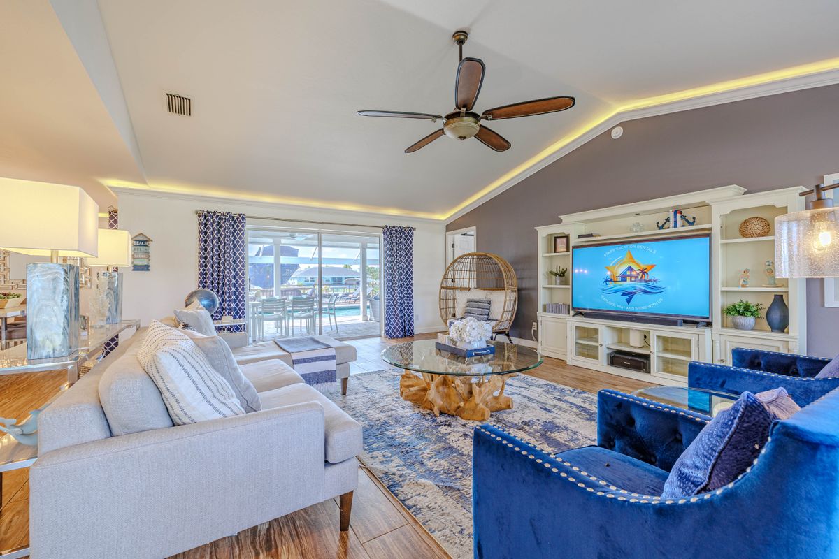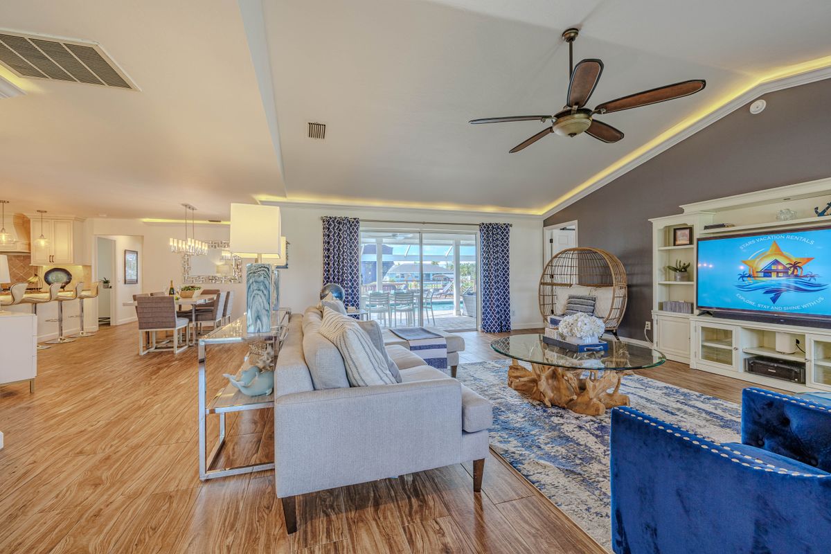 The villa's southern exposure ensures all-day sunshine by the pool, and the location couldn't be better: explore Sanibel Island, Fort Myers Beach, and Matlacha, or stay local and visit Cape Coral's shops, restaurants, and waterfront parks. Fishing and boating are right at your doorstep.