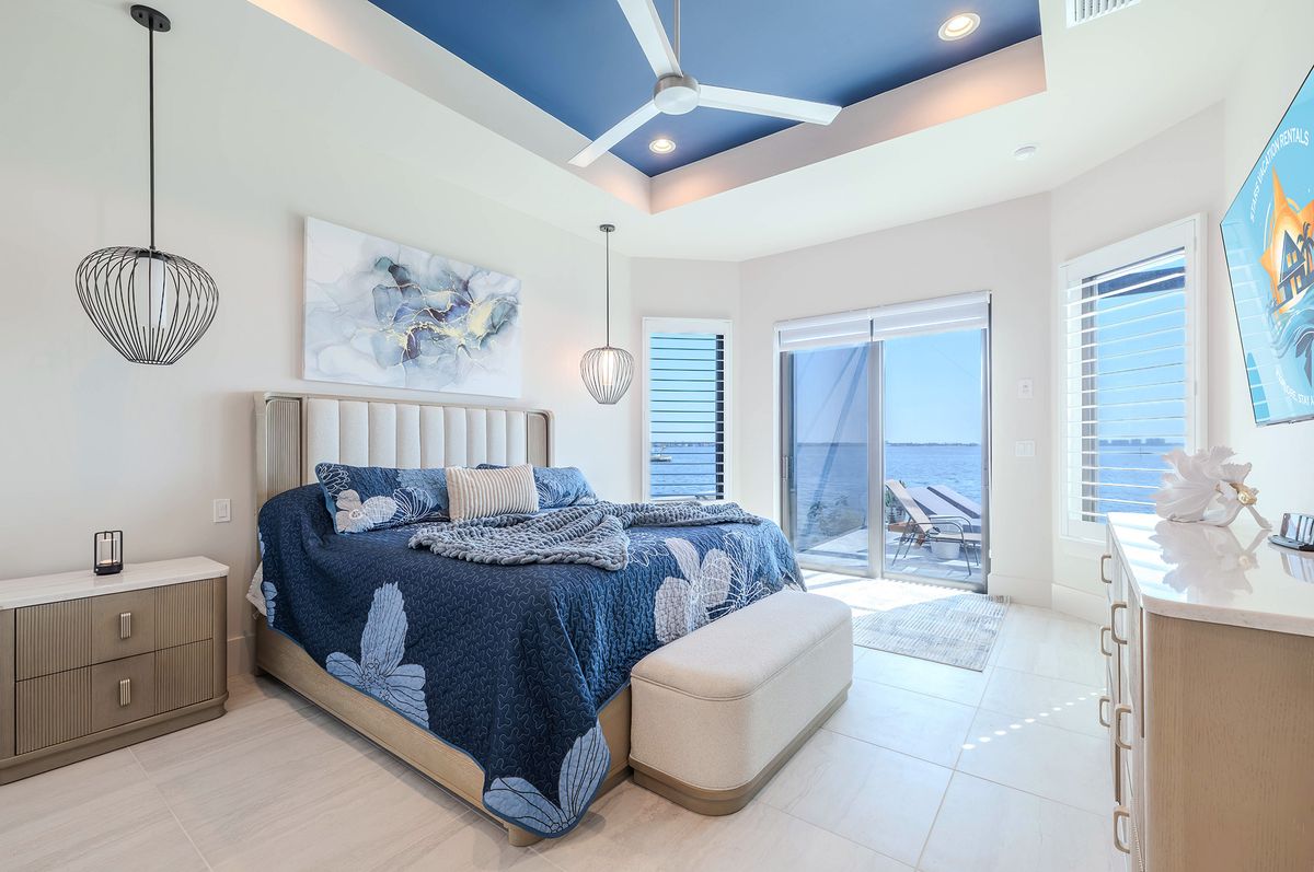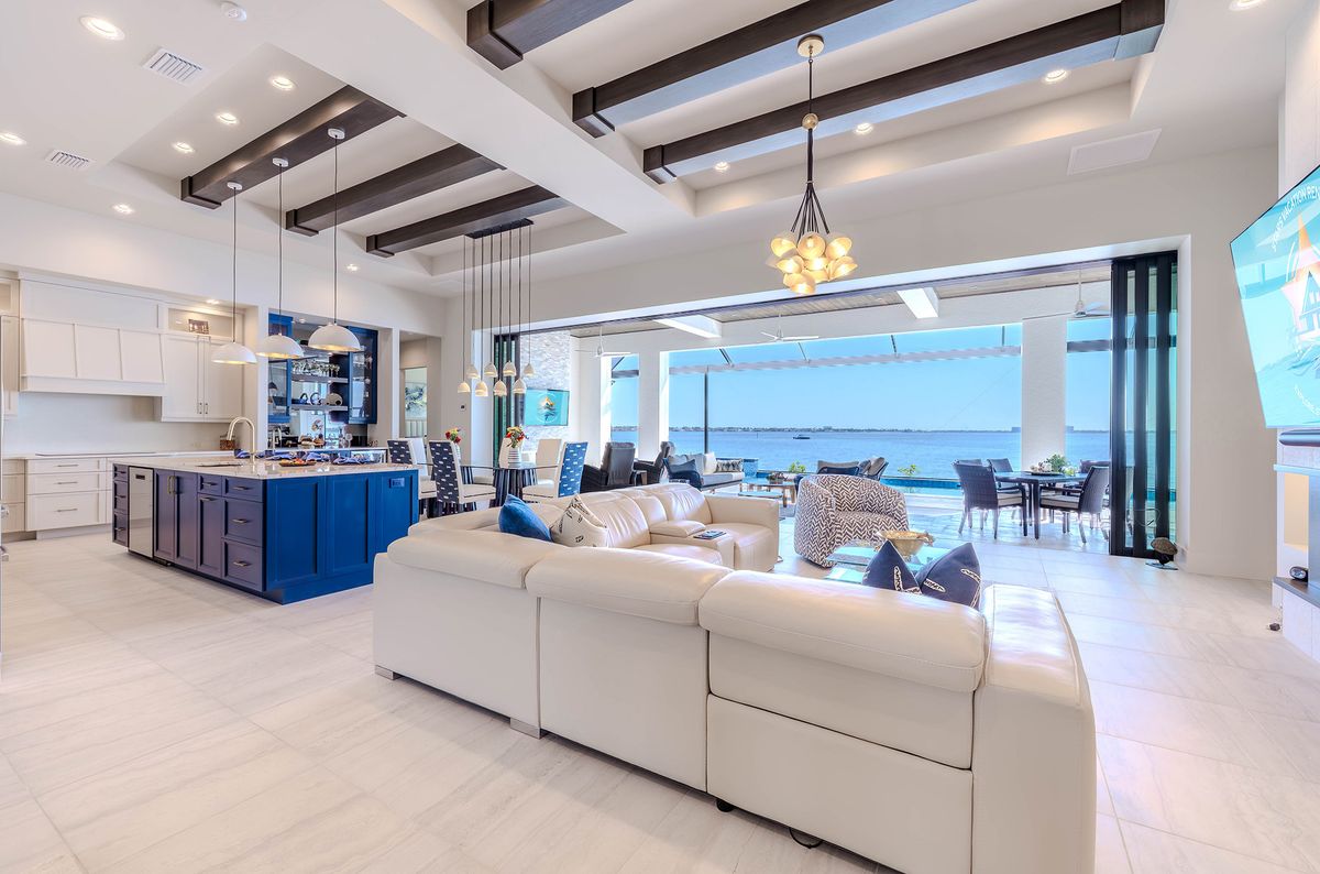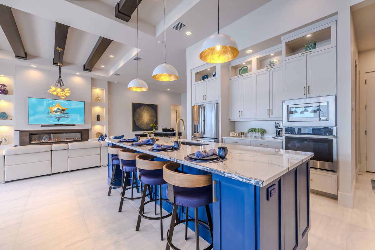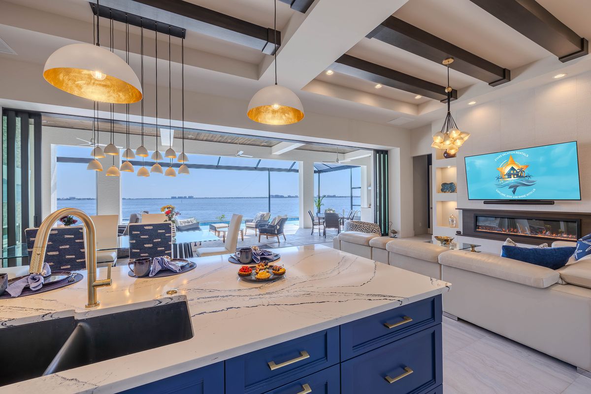 The chef's kitchen is fully equipped and perfect for entertaining, whether you're preparing a casual breakfast or a full dinner with friends and family—all while enjoying panoramic water views.