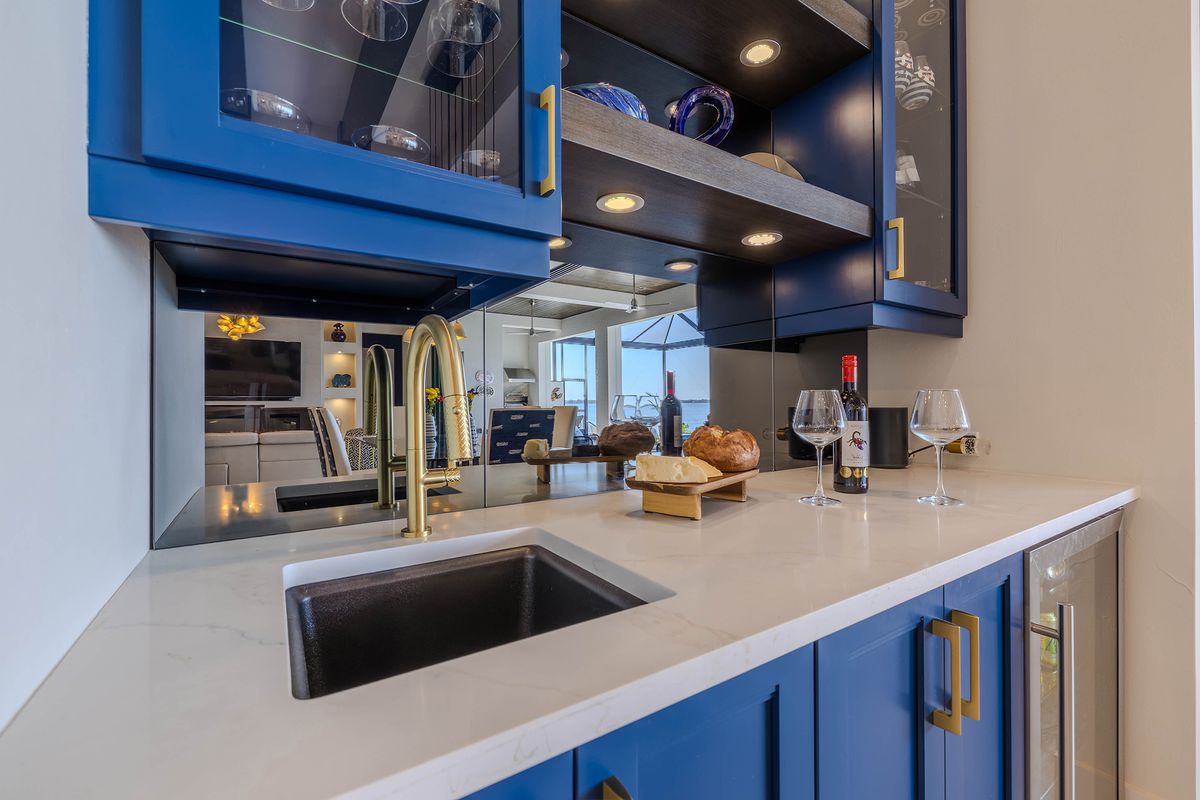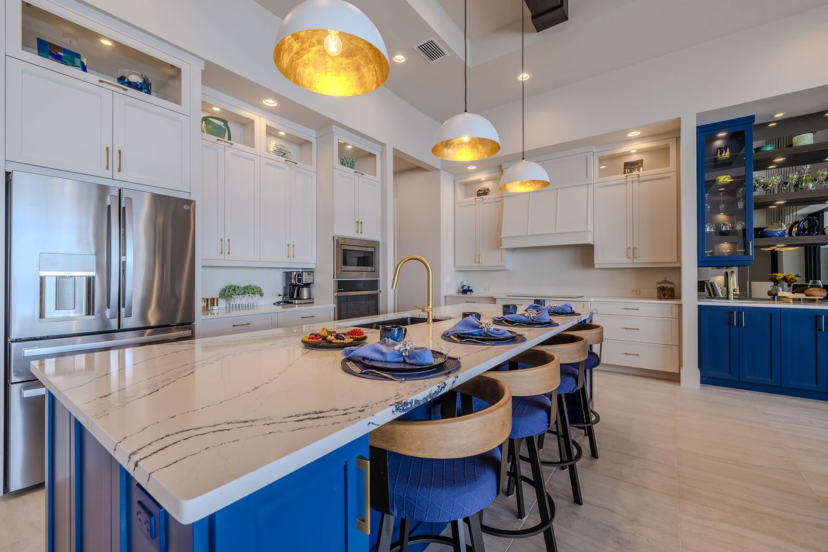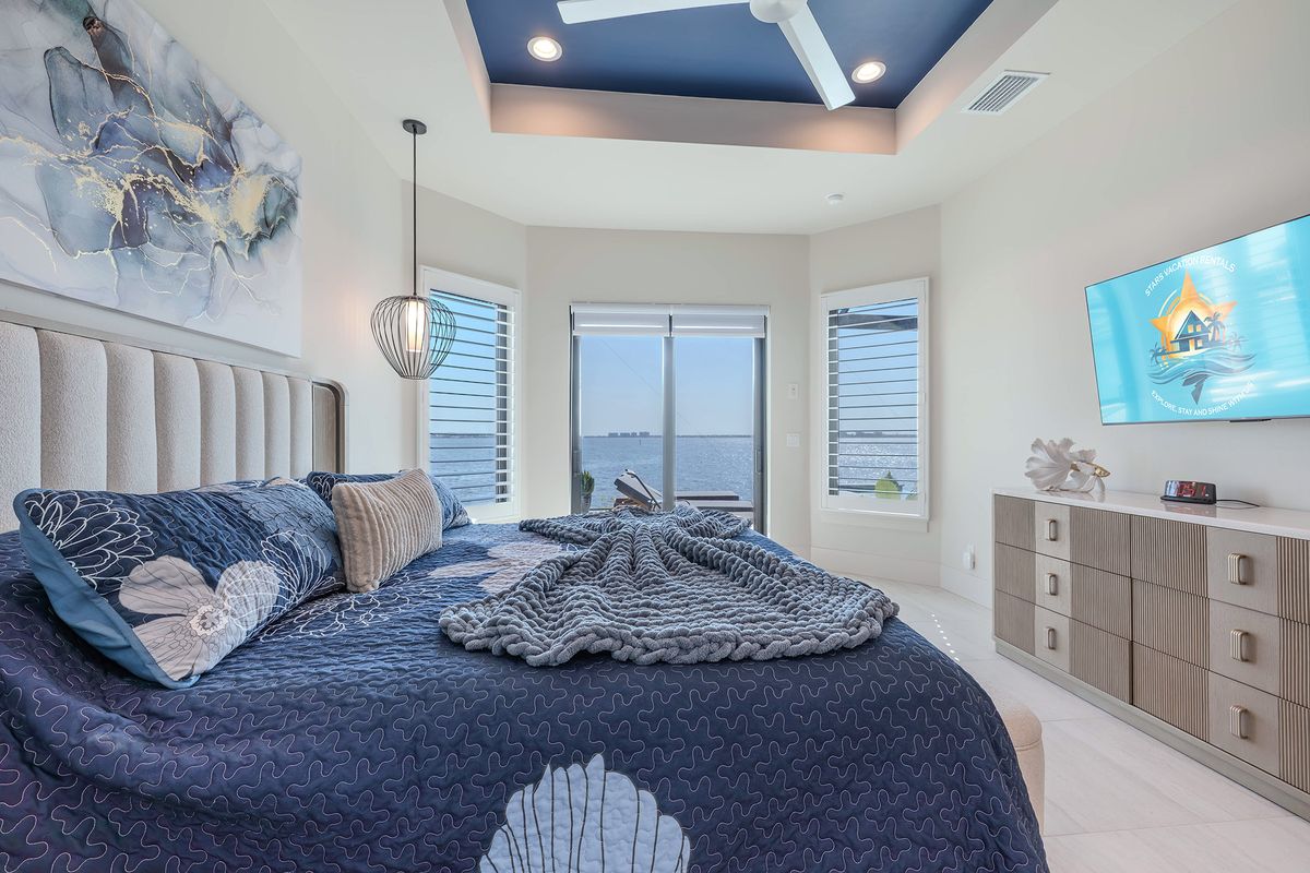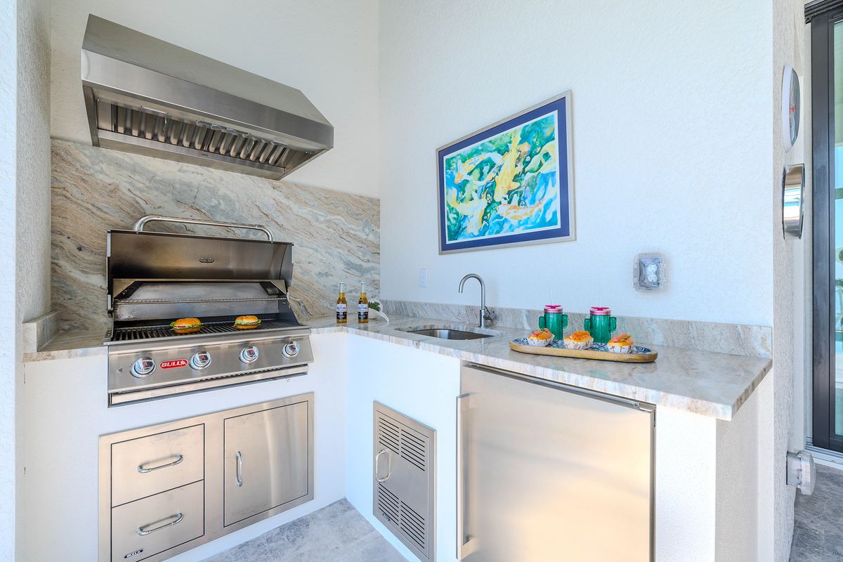 The chef's kitchen is fully equipped and perfect for entertaining, whether you're preparing a casual breakfast or a full dinner with friends and family—all while enjoying panoramic water views.