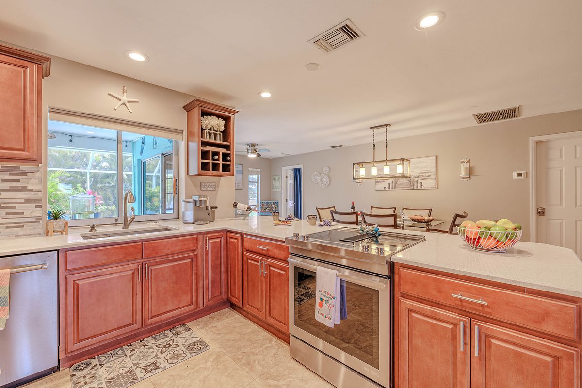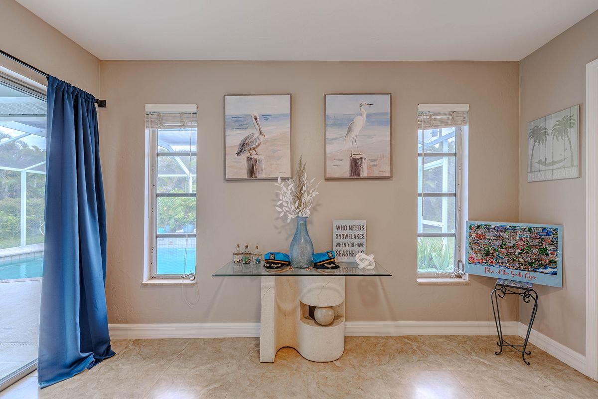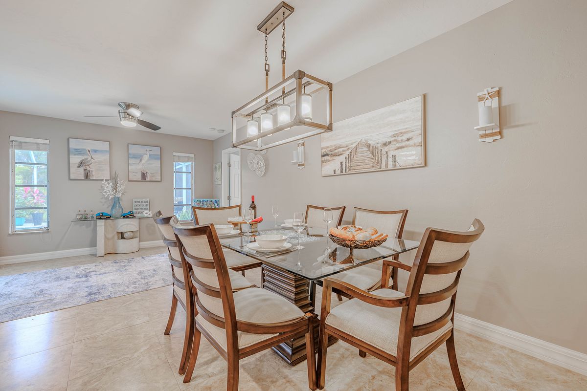 The home sits in a quiet neighborhood, offering privacy while still being close to Cape Coral's best attractions. Beaches, scenic parks, and waterfront dining are just a short drive away. Local laundromats and boat launches make longer stays and day trips on the water convenient.