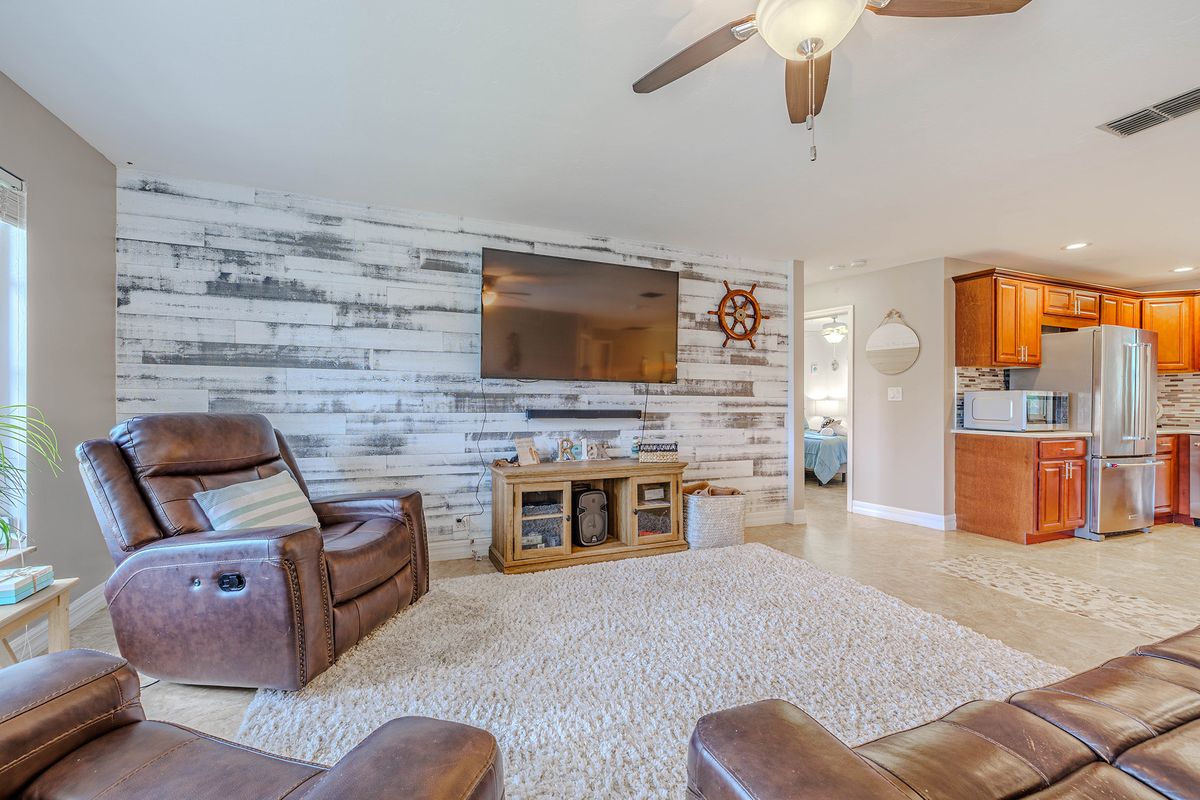 The backyard is the star of this home—a private, fully fenced space designed for fun and relaxation. Swim in the heated pool, dry off in a lounge chair, or catch a game or movie on the outdoor TV. A shaded patio is perfect for afternoon breaks, while the BBQ grill makes casual outdoor dinners a breeze.