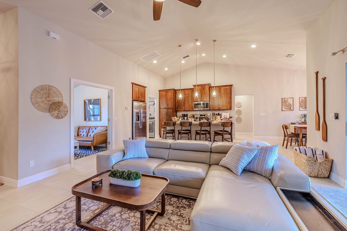 Step into a bright, thoughtfully designed living space featuring plush seating, chic décor, and a warm, inviting atmosphere. Whether sharing meals or curling up for a movie night, this home makes every moment feel special.