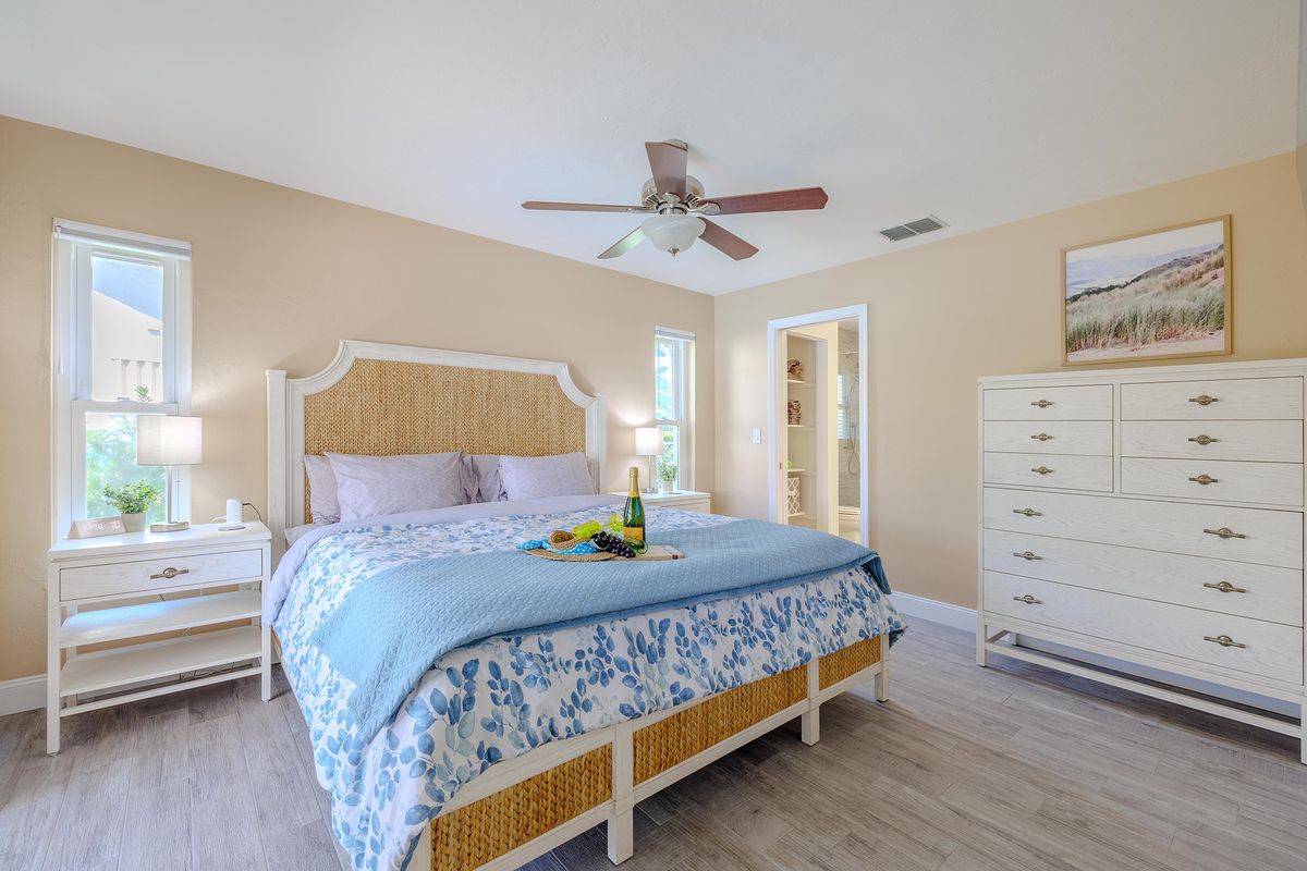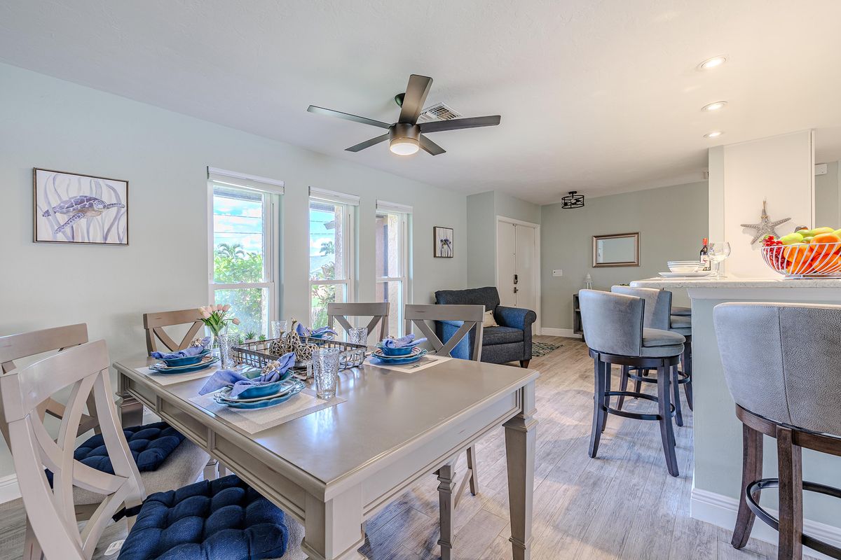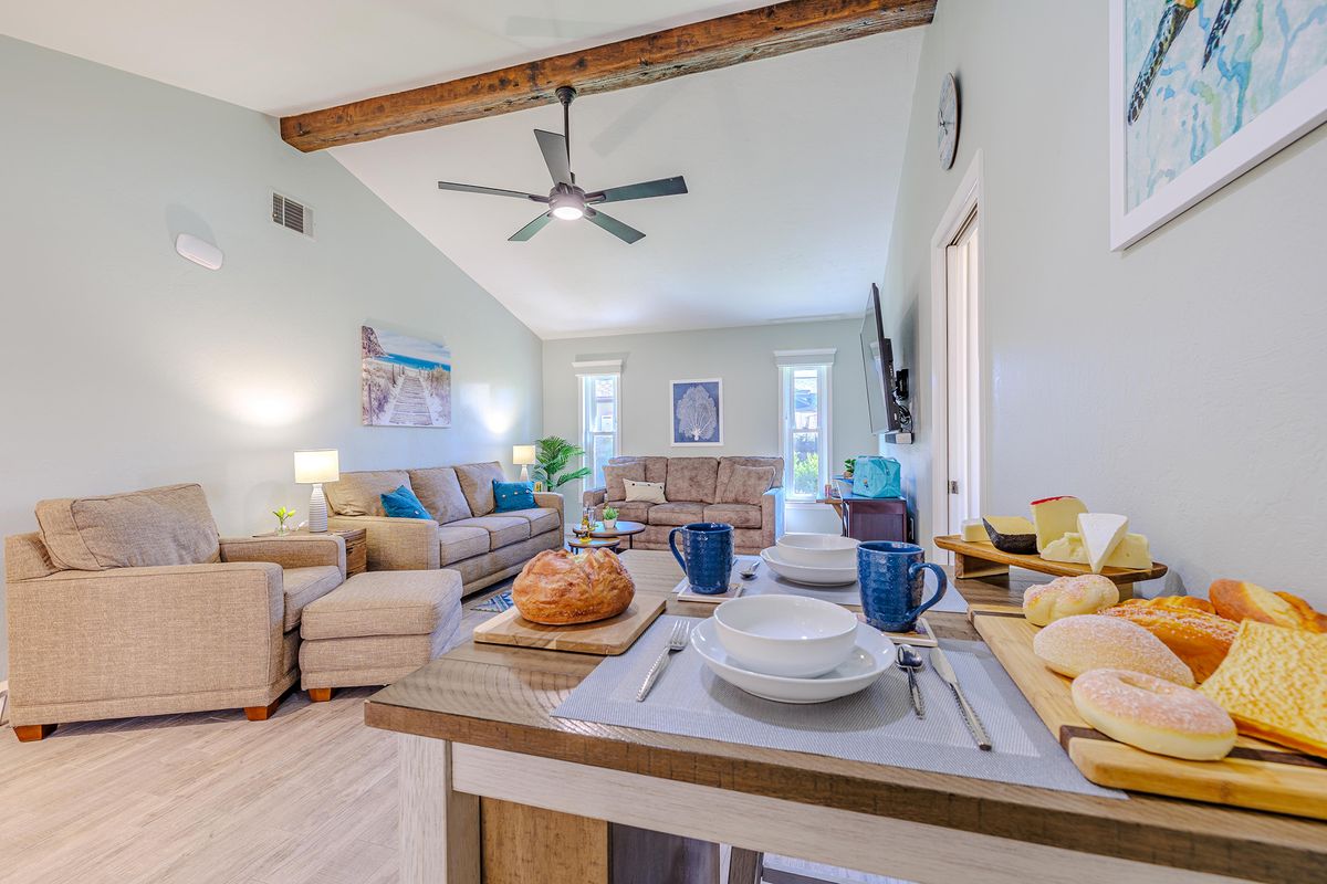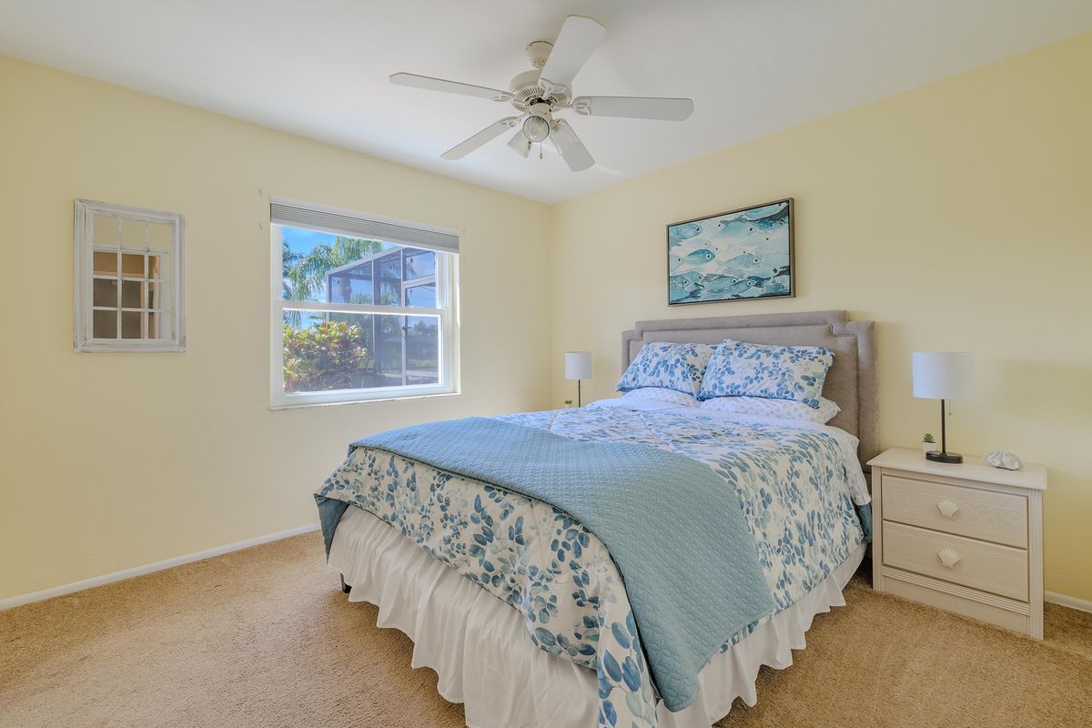 This villa is set up for both families and pet owners. Up to two small dogs (under 30 lbs) or one large dog are welcome with a pet fee. The fenced yard and nearby water access create a safe, enjoyable environment for both kids and pets.
