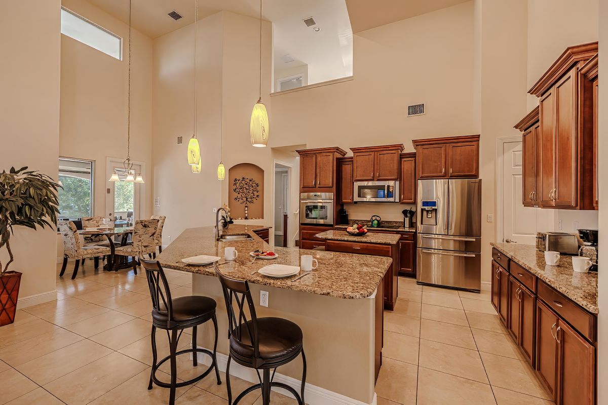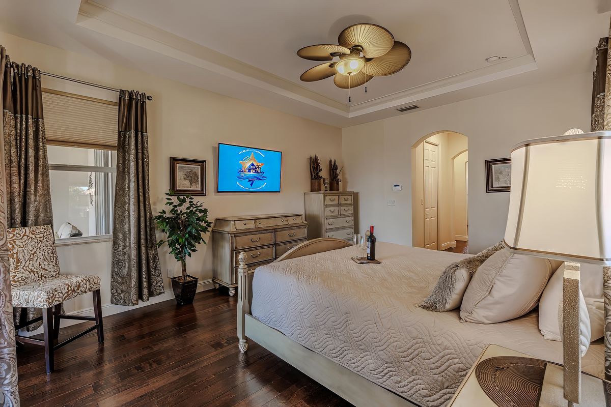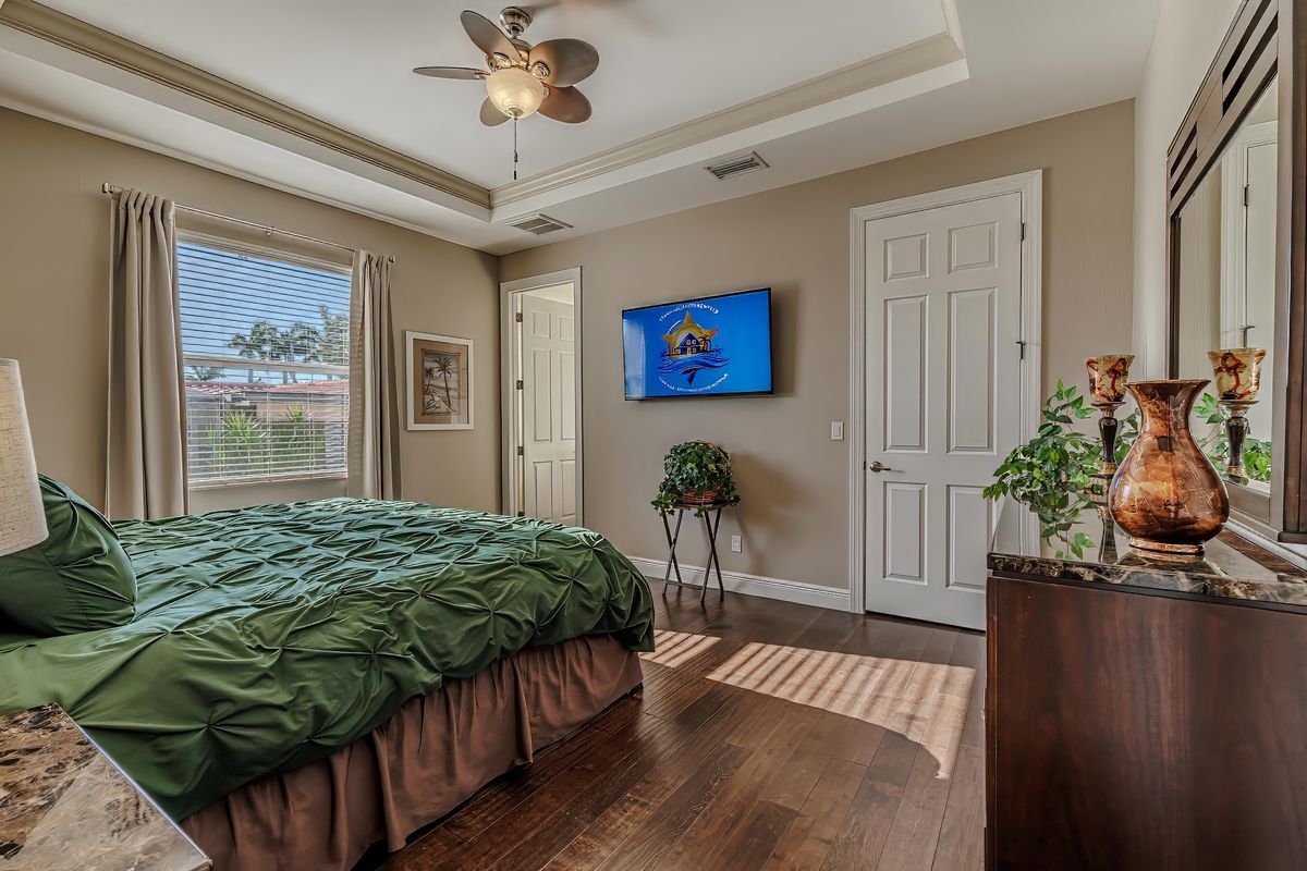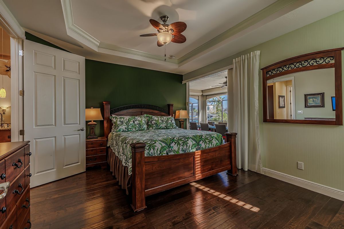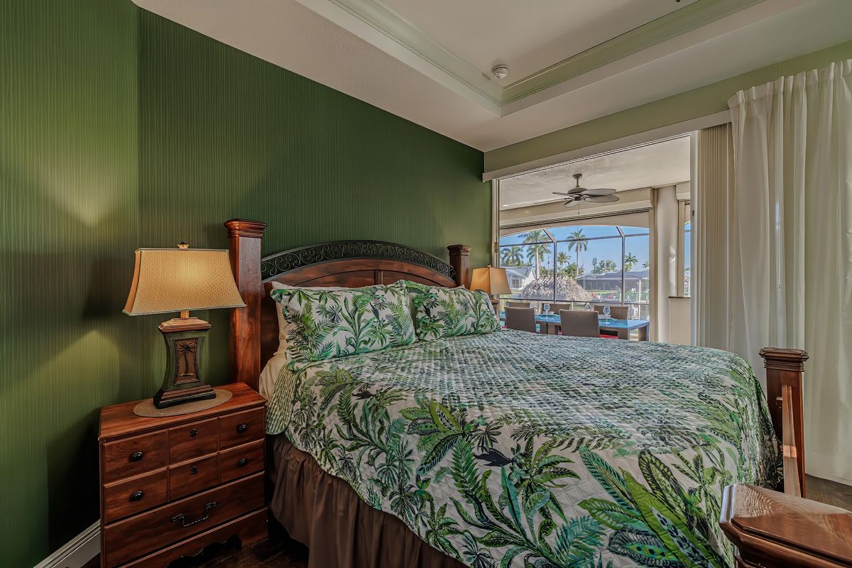 The villa's tropical backyard is made for sun-soaked days and breezy nights. Take a dip in the heated pool, sip a cocktail at the swim-up bar, or unwind in the hot tub under the stars. Fire up the BBQ for alfresco dining on the spacious patio, or retreat to the shaded Tiki bar for a laid-back evening drink. At the water's edge, your private dock offers Gulf access, fishing opportunities, and a front-row seat to Cape Coral's famous sunsets.