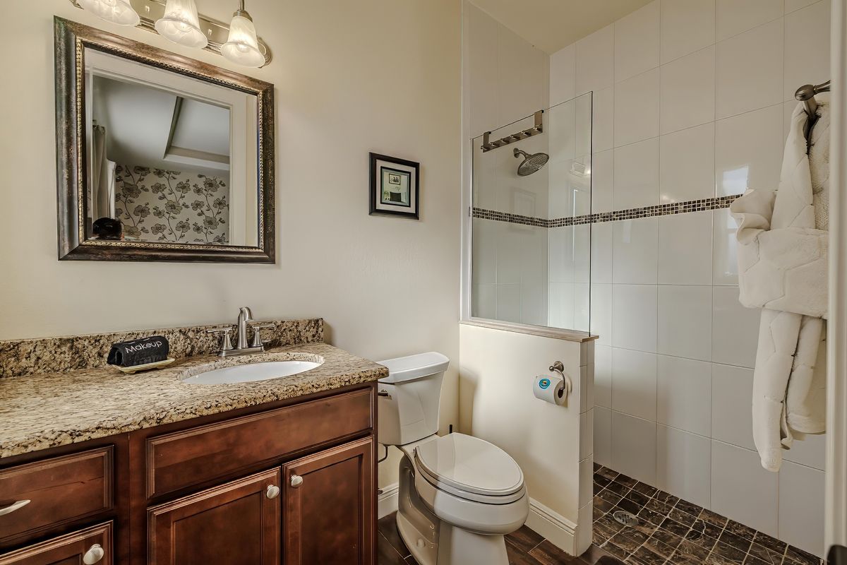 The upstairs suite offers additional privacy, perfect for guests who prefer a quiet retreat after a day in the sun.