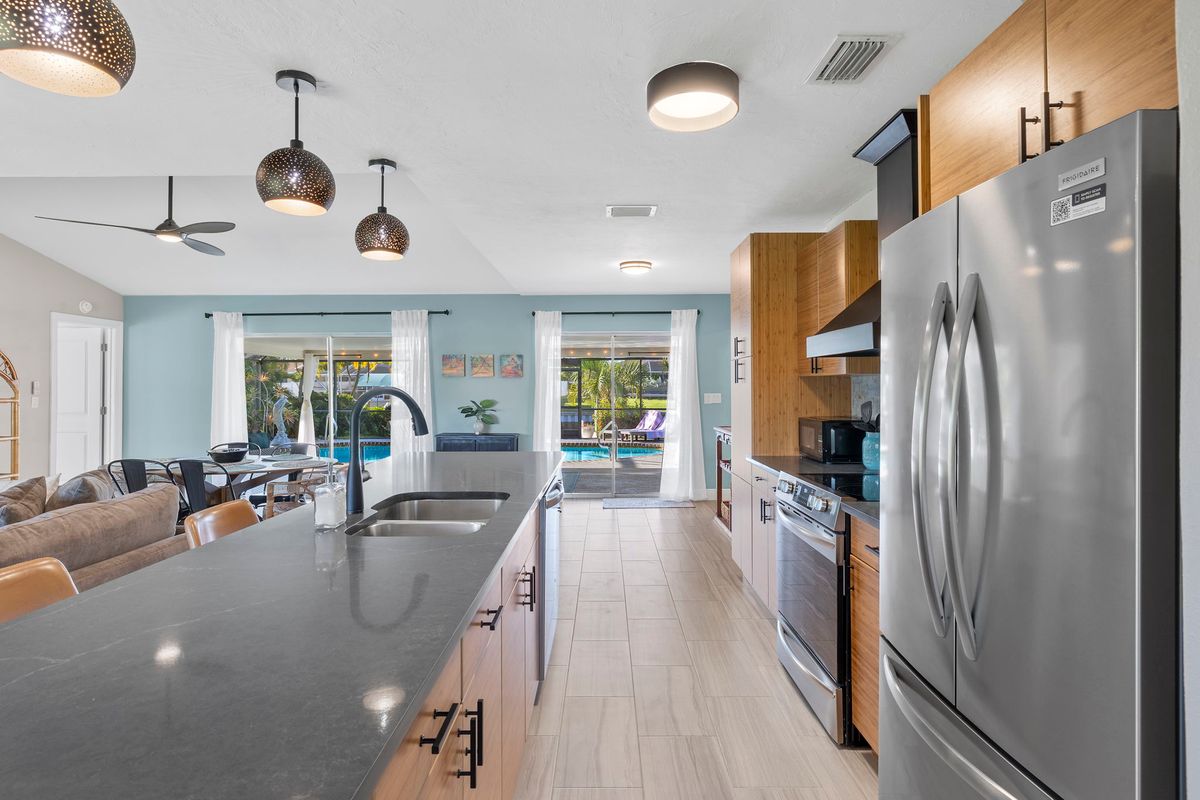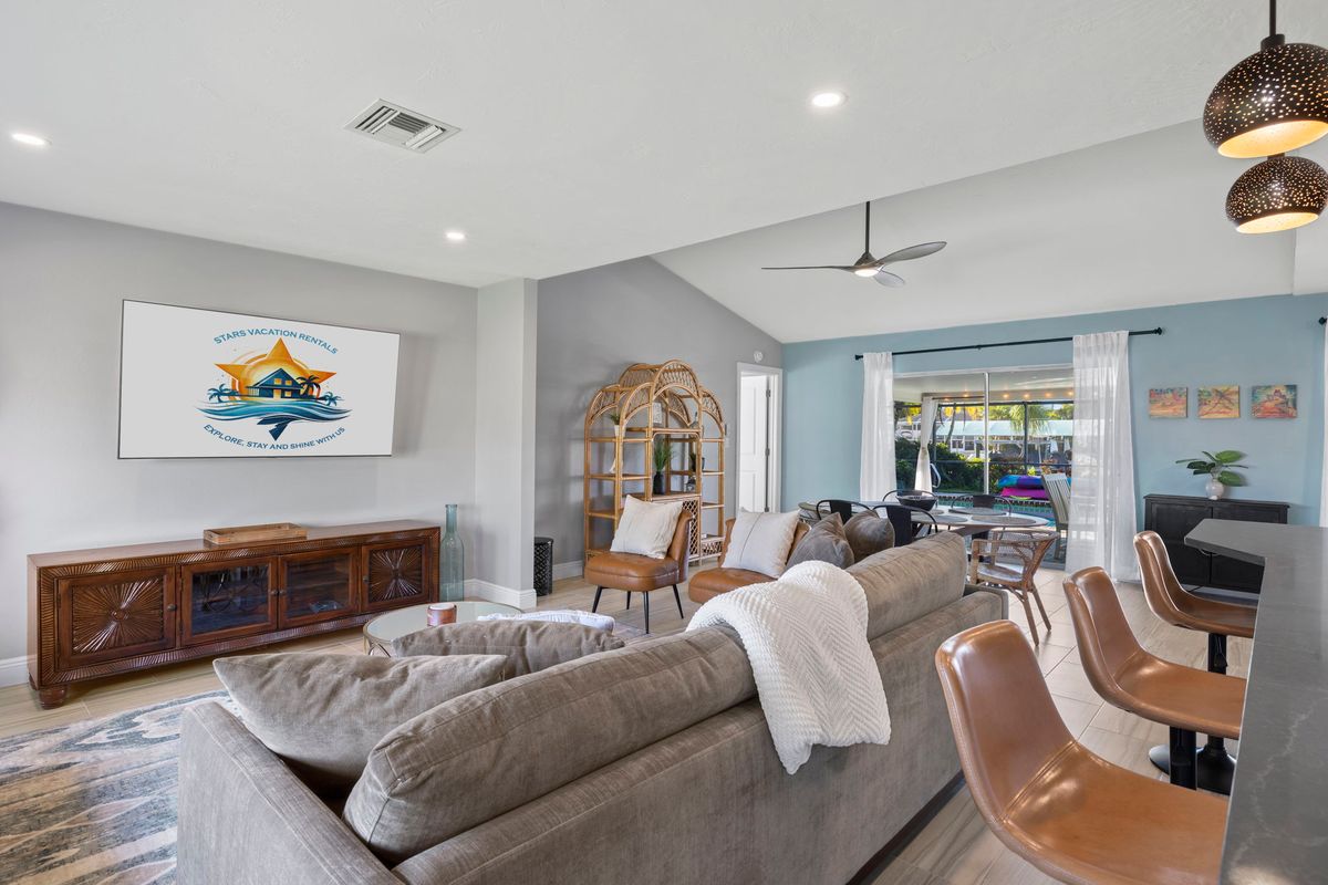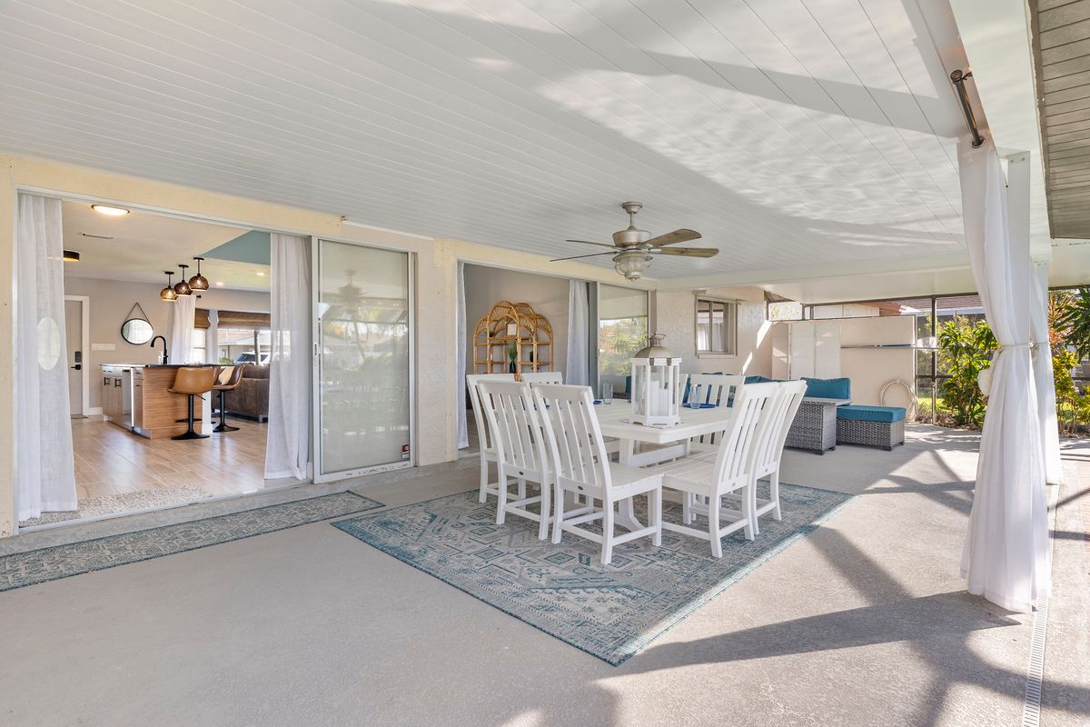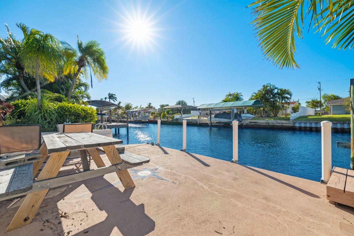 Enjoy your days on the spacious canal-front patio, where the water is always in view. Start mornings with coffee as boats pass by, cool off in the private pool, or end the day with dinner outdoors while the sun sets. With direct canal access and just one bridge to the waterways, it's a great spot for boating, fishing, or simply relaxing by the water.