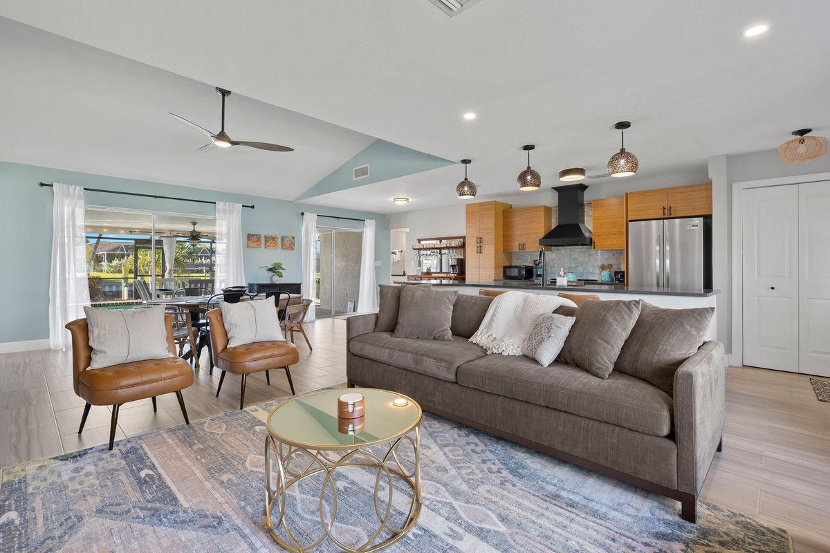 Located on Cape Coral's scenic canals, the home is close to boating, fishing, and waterfront dining. Beaches are just a short drive away, and nearby shops and laundromats make extended stays simple.