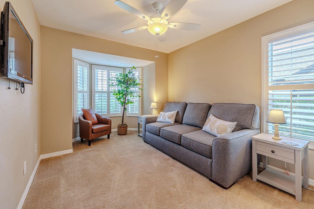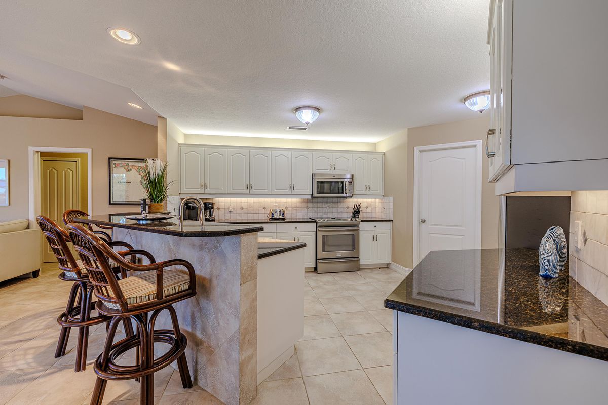 The living area flows seamlessly into the dining space and fully equipped kitchen with all granite countertops, making it ideal for family meals and entertaining.
