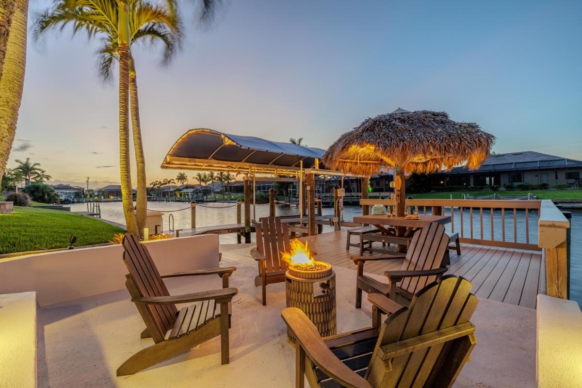 Welcome to Barefoot Cove, where easygoing Florida living meets peaceful waterfront views. Wake up to gentle canal breezes and the sound of swaying palms as you enjoy your morning coffee under the tiki hut. Spend your days floating in the heated private pool, fishing right from your dock, or watching boats pass by from your shaded lounge seat. In the evenings, unwind around the fire pit and soak in a sky full of stars.